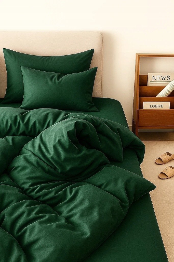 Stylowa pościel z mikrofibry w butelkowym zielonym kolorze