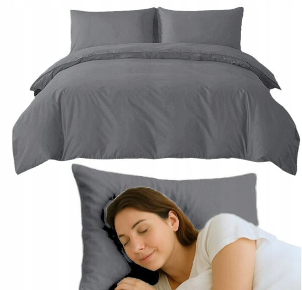 Pościel 160×200 gładka komplet CIEMNOSZARY