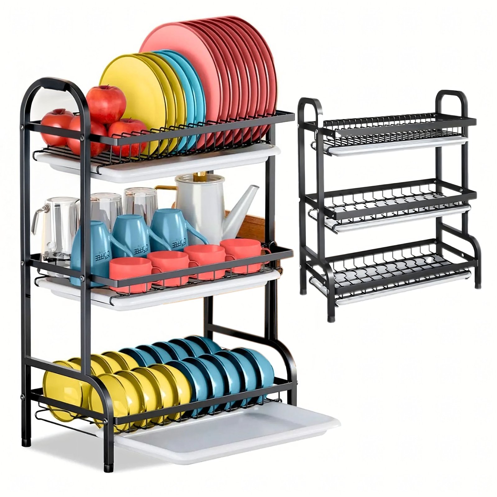 Suszarka do Naczyń Ociekacz Trzypoziomowa Składana Czarna Duża XXL